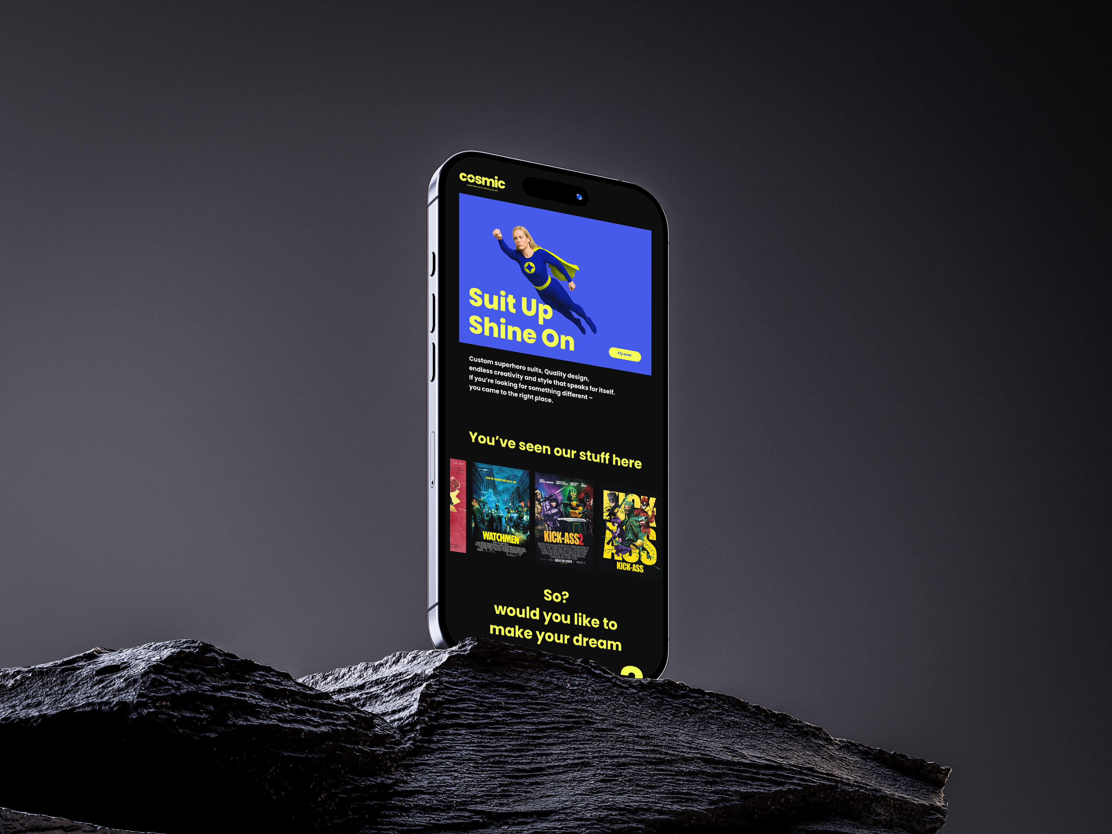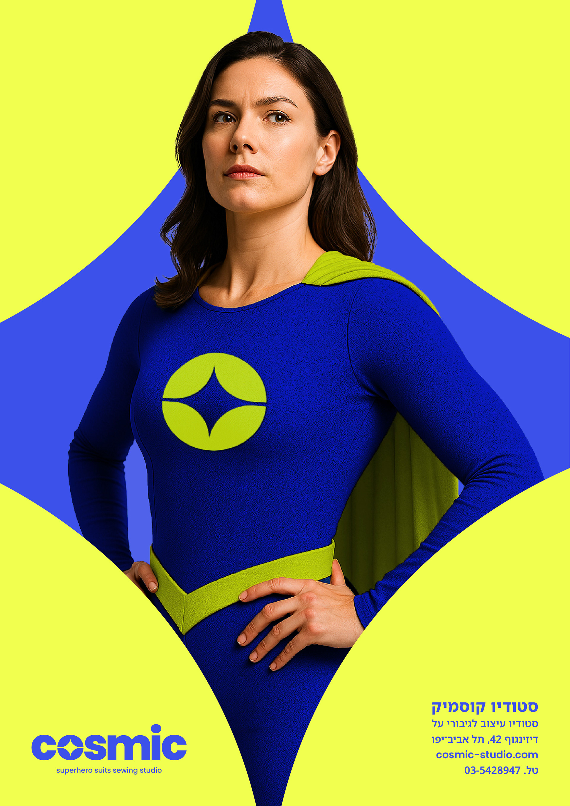 Imagine a world where superheroes walk among us, each one is striving to stand out and appear unique as possible. This is where the ultimate superhero brand enters the scene: Cosmic. Cosmic is a unique and luxurious fashion brand specializing in the highest grade production of superhero suits. From a branding perspective, I wanted to give the brand a strong and clear language, much like a superhero's suit, and simultaneously show the atmosphere of an exclusive, high-end fashion brand.